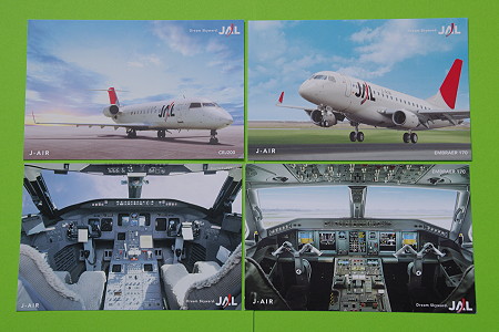 JAL Boarding Certificates These are not postcards. Flight log can be written in the reverse side. JALの「ご搭乗ありがとうございます」カード(搭乗証明) ポストカードではなくて、裏面には「ご搭乗ありがとうございます」の言葉が書かれていて、 日付、便名や乗務員の名前を書き込むようになっています。これを書いてもらって集めれば フライトログブックができます。ちなみに、写真のカードには何も記入してありません。 |